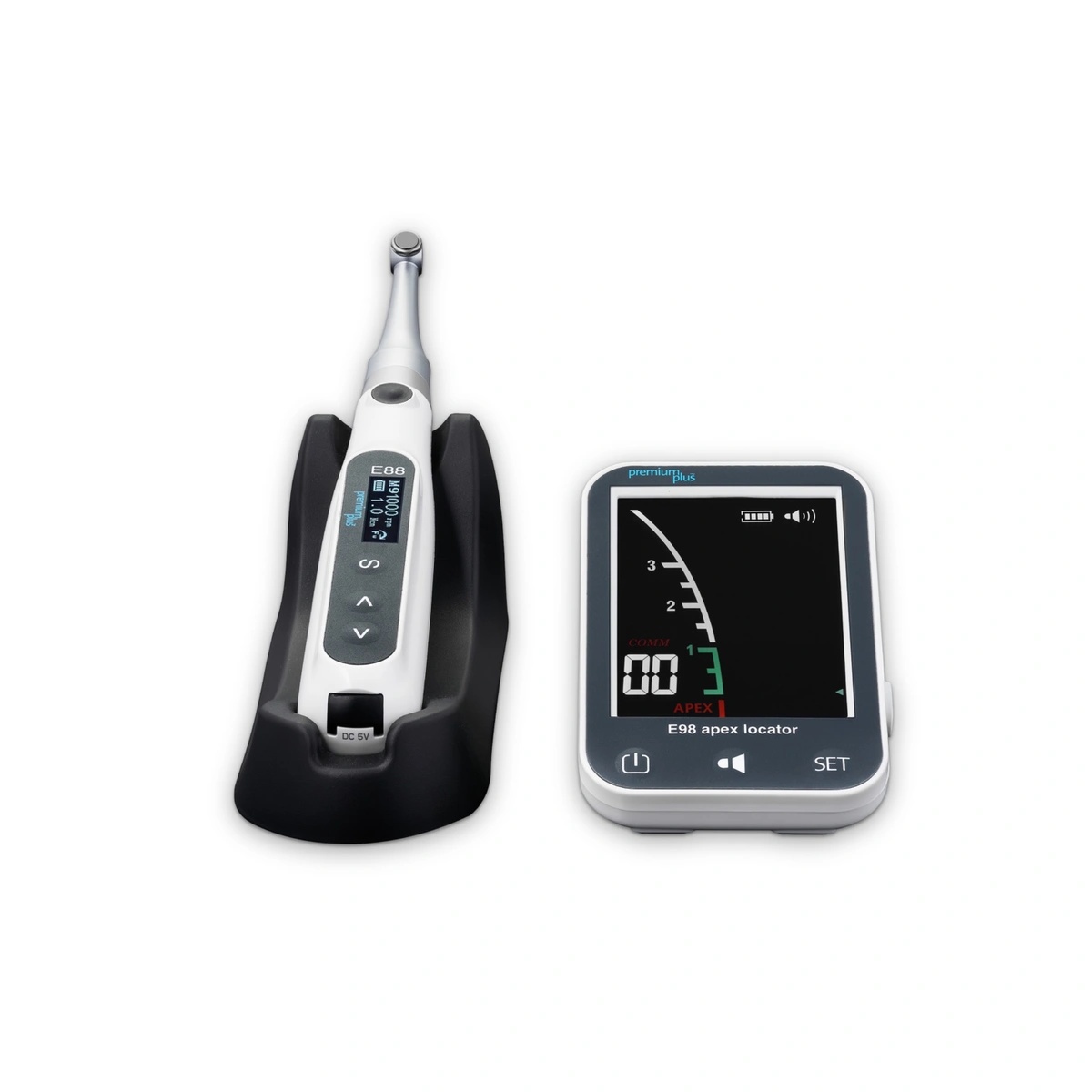 Der E88 Endomotor in Kombination mit dem E98 Apex-Lokator von Premium Plus ist die perfekte Lösung für präzise und effiziente endodontische Behandlungen. Mit modernster Technik ausgestattet, überzeugt das System durch einen hochauflösenden OLED-Bildschirm, einen geräuscharmen, kraftvollen Motor und eine intuitive Bedienung – sowohl für Rechts- als auch für Linkshänder.