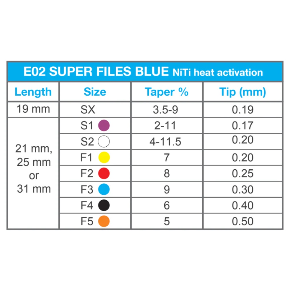 Produkt: Super Feilen E2 Blue NiTi (Endodontie, rotierende Wurzelkanalinstrumente)